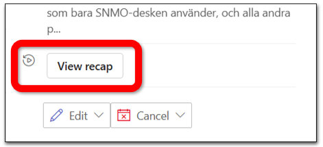 OBS: Sammanfattnings-funktionen dyker inte upp för alla möten, utan kan variera beroende på hur mycket kontext mötet har i dina dokument, email och annan information i M365.