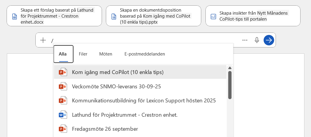 Copilot kan hjälpa dig att klistra in information från andra filer i ditt Word-dokument.