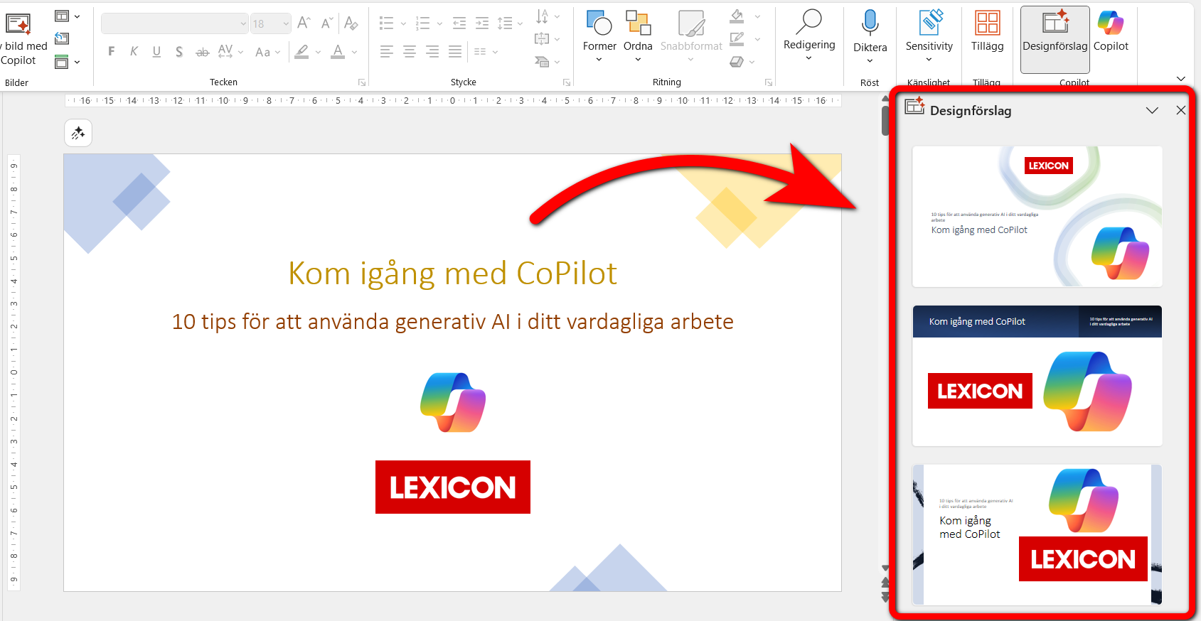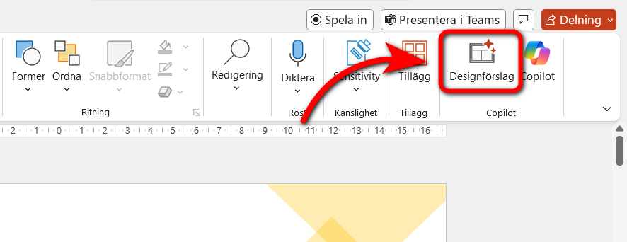 Med funktionen Designförslag i Powerpoint kan du få förslag på layout och grafik för att piffa upp dina presentationer.